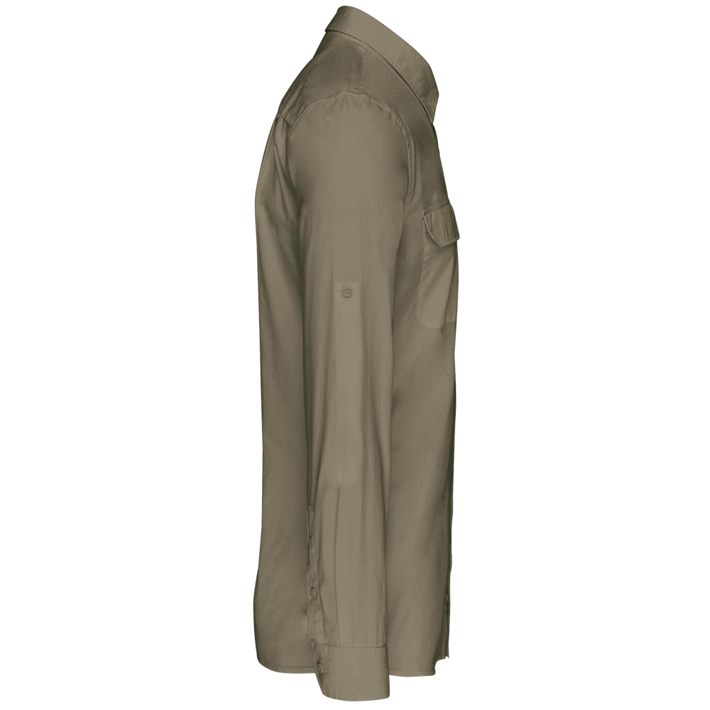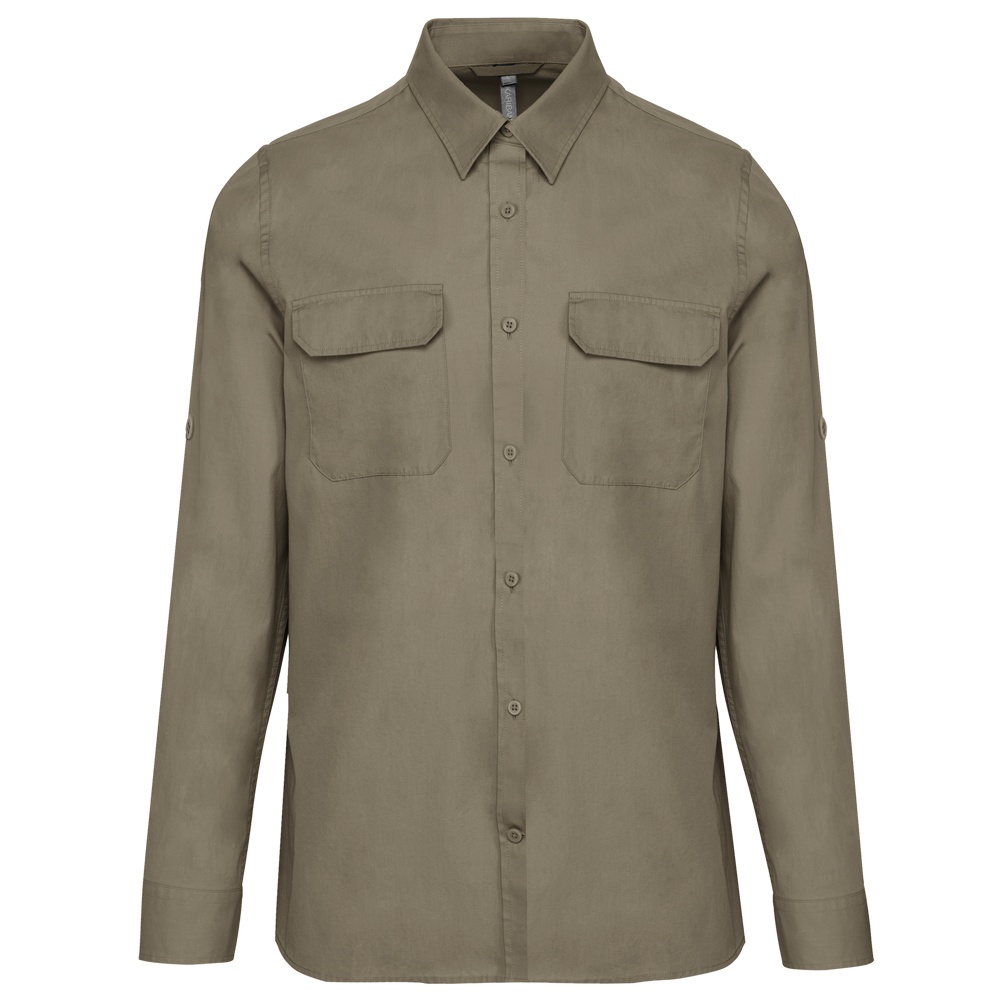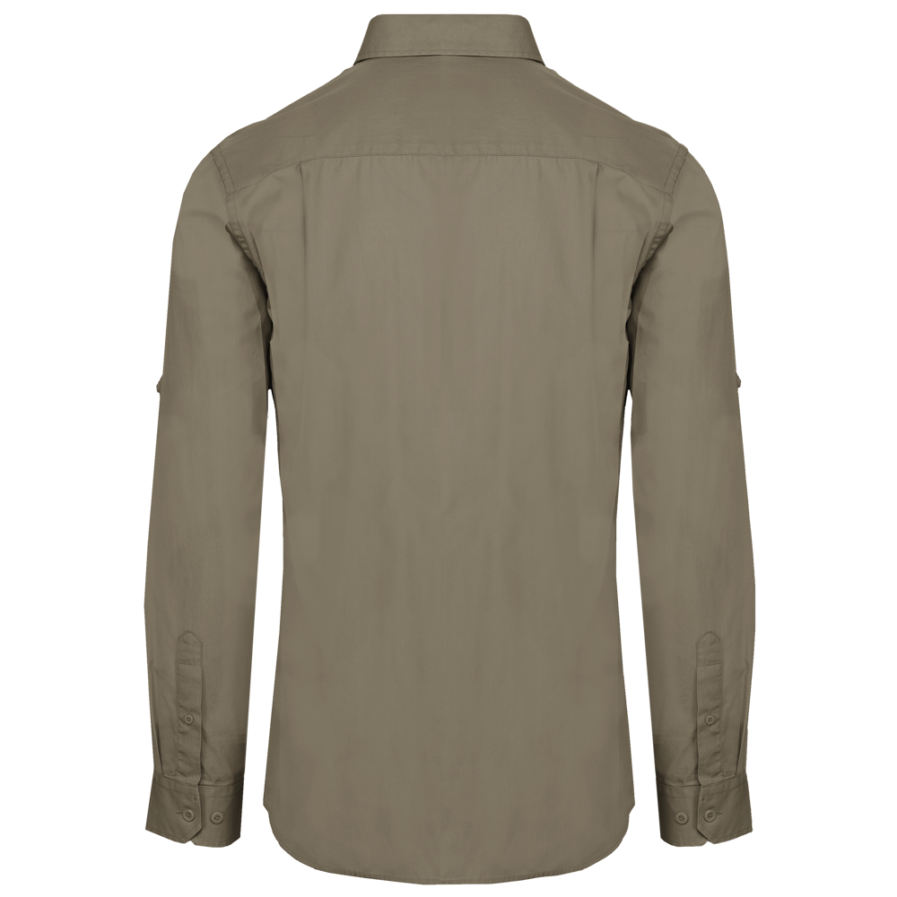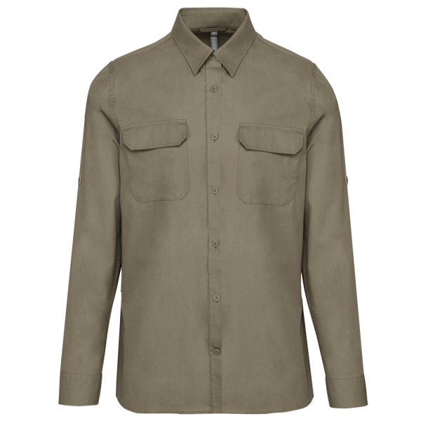 100% katoen. Popeline. Kraag zonder knopen. 2 opgezette zakken met klep aan de voorkant. Verstelbare mouwuiteinden met knoop. Opstroopbare mouwen met een knooplijst. Shirt gewassen. Dit product kreeg een speciale behandeling om het er verouderd te laten uitzien. Dit ambachtelijke procedé maakt dat er kleurverschillen zijn tussen de producten, waardoor elk stuk uniek is.