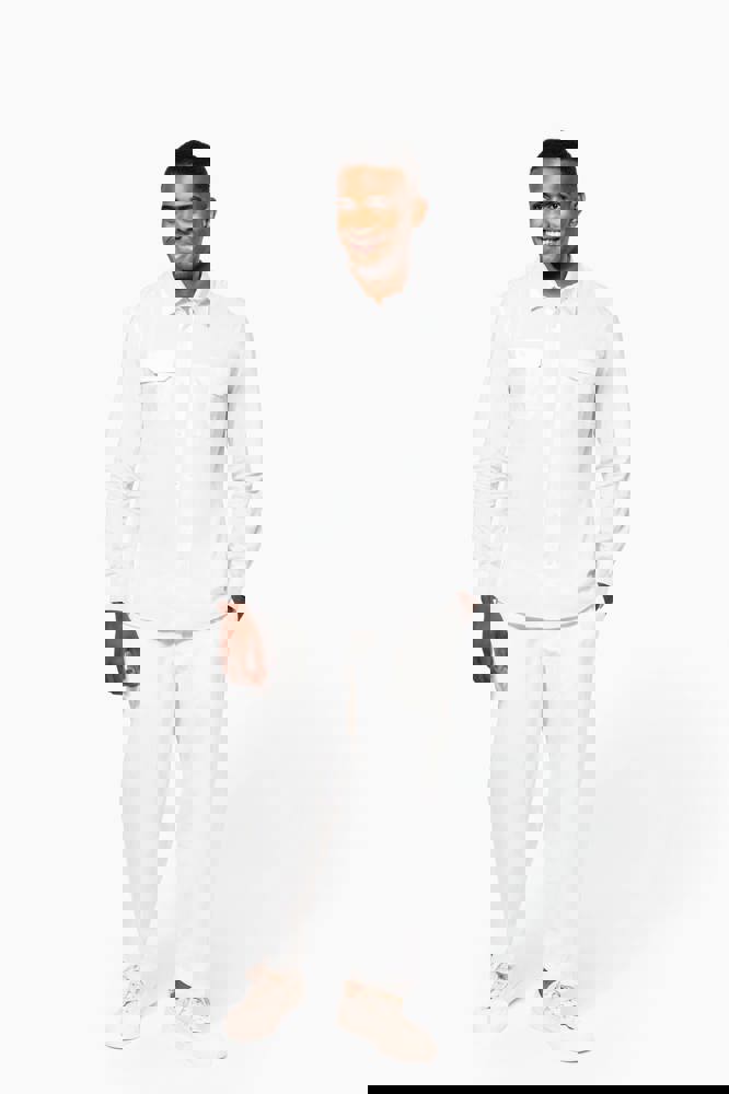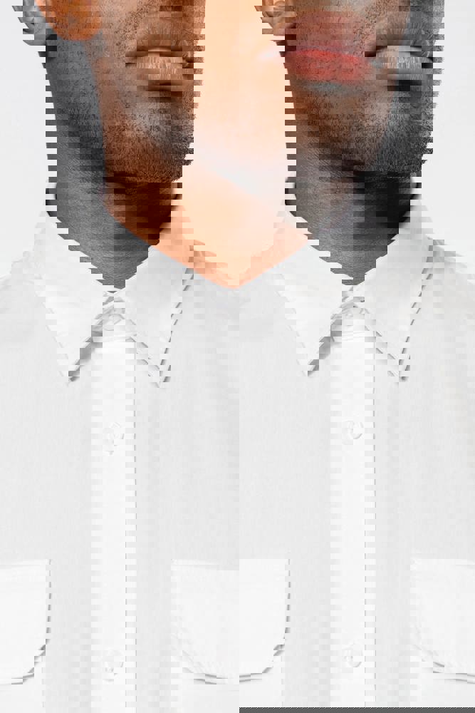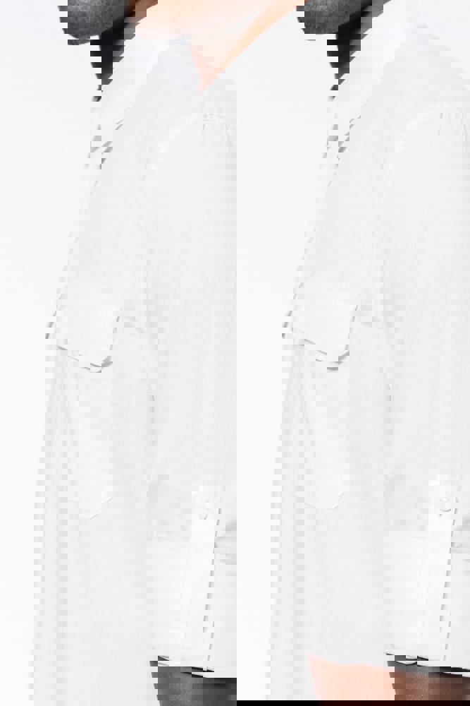 100% katoen. Popeline. Kraag zonder knopen. 2 opgezette zakken met klep aan de voorkant. Verstelbare mouwuiteinden met knoop. Opstroopbare mouwen met een knooplijst. Shirt gewassen. Dit product kreeg een speciale behandeling om het er verouderd te laten uitzien. Dit ambachtelijke procedé maakt dat er kleurverschillen zijn tussen de producten, waardoor elk stuk uniek is.