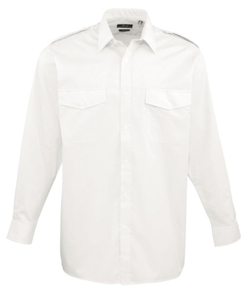 65% polyester / 35% katoen. Versterkte kraag. 2 borstzakken met knopen en penhouder op de linkerzijde. Epauletten niet meegeleverd. Kraag in cm tussen haakjes.