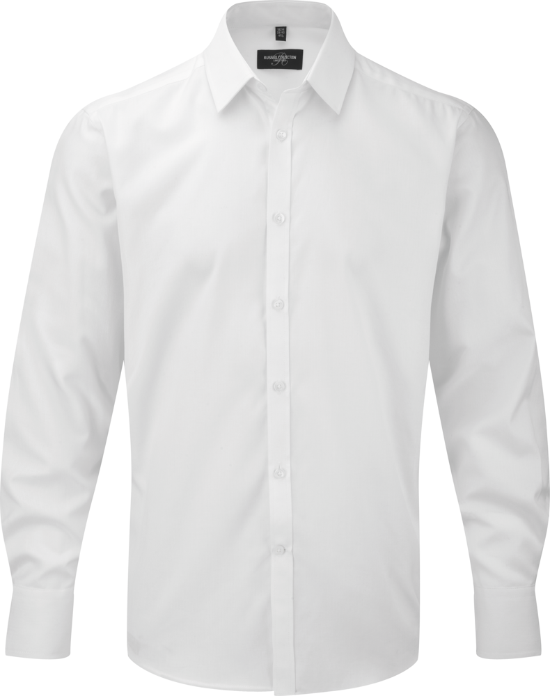84% katoen / 16% polyester. Dit overhemd met visgraatmotief is een geschikt alternatief voor het klassieke Oxford shirt. Half bedekte kraag en korte overslag. Smalle knooplijst. Afgeronde manchetten. Getailleerde snit. EasyCare.