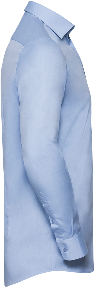 84% katoen / 16% polyester. Getailleerd. Kraagstaander met knopen. Contrasterende elementen: binnenkant manchetten, binnenkant kraag met contrasterende bies. Lage knooplijst met contrasterende boorden. Contrasterende kleuren aan de knoopsgaten van de manchetten en het onderste knoopsgat. Plooien op de achterkant voor een betere pasvorm. Regelbare, afgeronde manchetten met twee knopen. Afgeronde zoom.