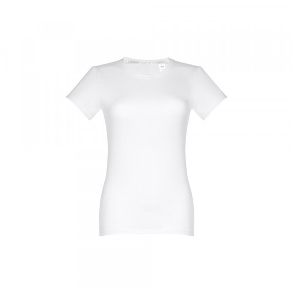 Getailleerd 100% gekaard katoenen jersey dames-T-shirt (190 g/m²). Bevat dunne jersey kraag met satijnen verstevigingslint. Gesneden en genaaid stuk met dubbele naad in de mouwen en onderkant. Maten: S, M, L, XL, XXL