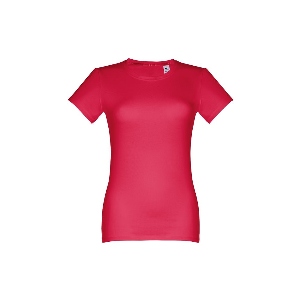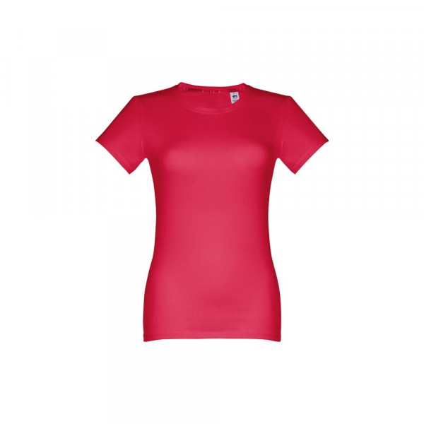 Getailleerd 100% gekaard katoenen jersey dames T-shirt (190 g/m²) (kleur 183: 90% katoen en 10% viscose). Bevat dunne jersey kraag met satijnen verstevigingslint. Gesneden en genaaid stuk met dubbele zoom aan de mouwen en onderkant. Maten: S, M, L, XL, XXL