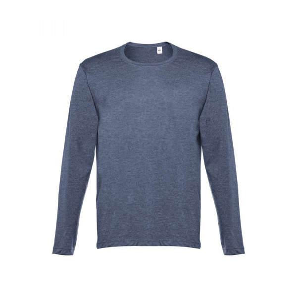 Heren-T-shirt met lange mouwen. 100% gekaard katoenen jersey (150 g/m²). Kleuren: 195: 60% katoen/40% polyester, kleur 183: 90% katoen/10% viscose. Ribkraag 1x1 en jersey verstevigingslint. Buisvormig T-shirt met normale snit en dubbele zoom aan de mouwen en onderkant. Maten: S, M, L, XL, XXL