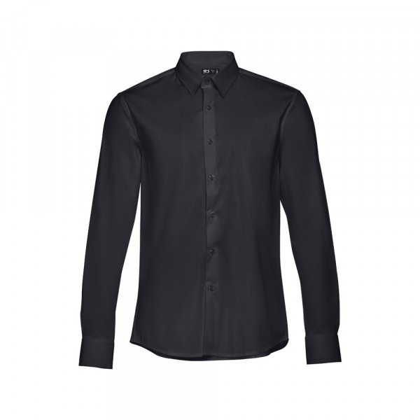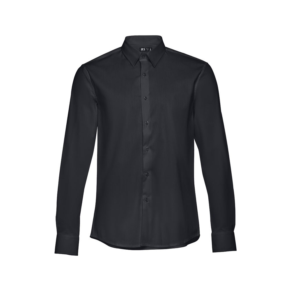 Herenhemd met lange mouwen van 68% katoen, 28% polyamide en 4% Elastaan (115 g/m²). Lange mouw met 1 plooi en verstelbare manchetten met 2 knopen. Hemdsluiting met 7 knopen in bijpassende kleur. Maten: S, M, L, XL, XXL