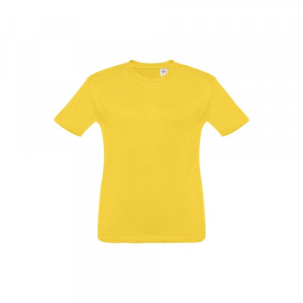 T-shirt voor kinderen (unisex). Van 100% gekaard jersey katoen (150 g/m²). Bevat een 1x1 ribkraag met tricotverstevigings biaisband. Geknipt en genaaid kledingstuk met dubbel gestikte zoom aan de mouwen en onderkant. Maten: 2, 4, 6, 8, 10, 12