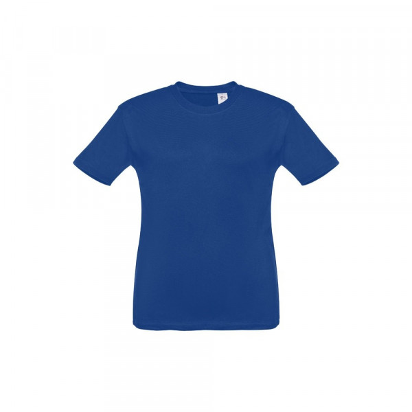 T-shirt voor kinderen (unisex). Van 100% gekaard jersey katoen (150 g/m²). Bevat een 1x1 ribkraag met tricotverstevigings biaisband. Geknipt en genaaid kledingstuk met dubbel gestikte zoom aan de mouwen en onderkant. Maten: 2, 4, 6, 8, 10, 12