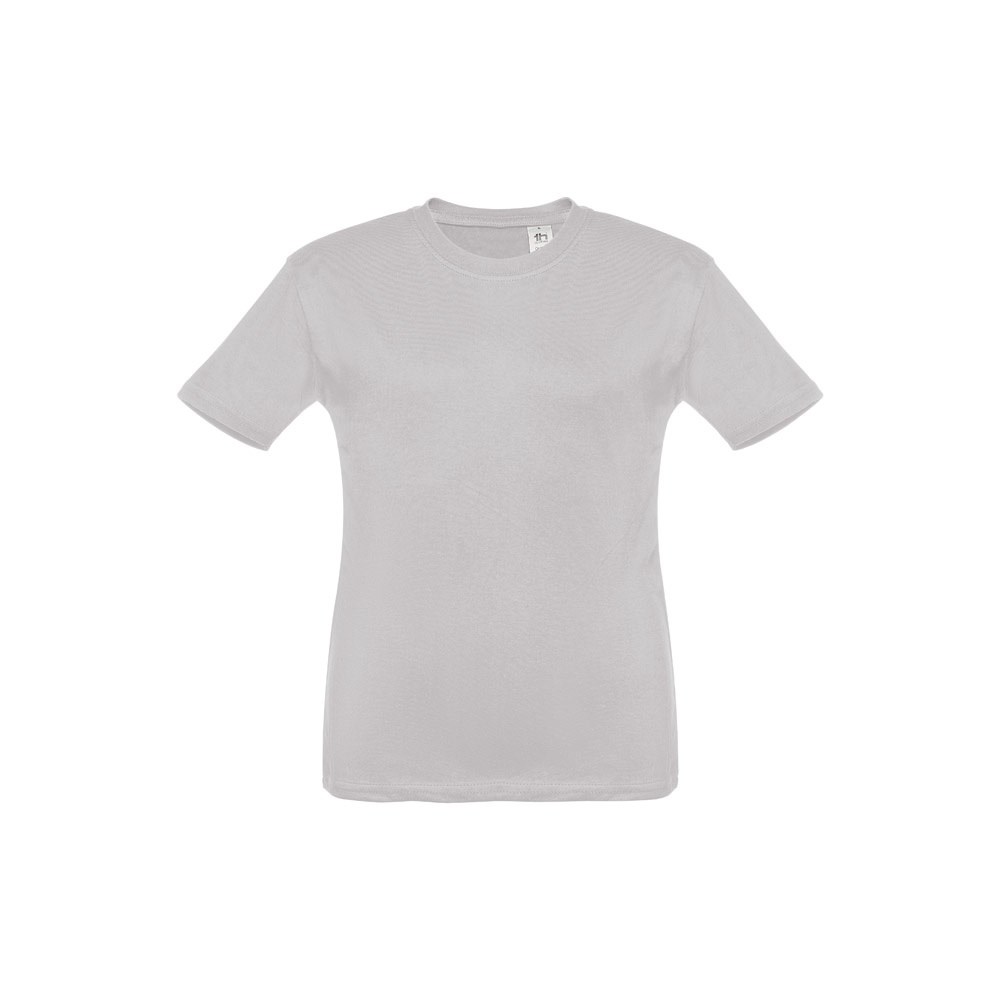 T-shirt voor kinderen (unisex). Van 100% gekaard jersey katoen (150 g/m²). Bevat een 1x1 ribkraag met tricotverstevigings biaisband. Geknipt en genaaid kledingstuk met dubbel gestikte zoom aan de mouwen en onderkant. Maten: 2, 4, 6, 8, 10, 12