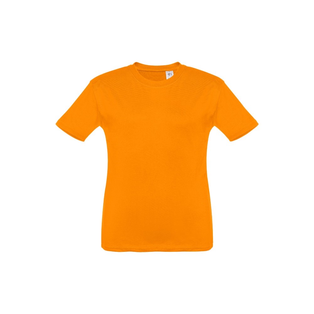 T-shirt voor kinderen (unisex). Van 100% gekaard jersey katoen (150 g/m²). Bevat een 1x1 ribkraag met tricotverstevigings biaisband. Geknipt en genaaid kledingstuk met dubbel gestikte zoom aan de mouwen en onderkant. Maten: 2, 4, 6, 8, 10, 12
