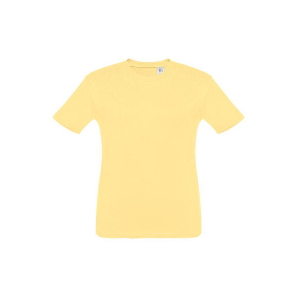 T-shirt voor kinderen (unisex). Van 100% gekaard jersey katoen (150 g/m²). Bevat een 1x1 ribkraag met tricotverstevigings biaisband. Geknipt en genaaid kledingstuk met dubbel gestikte zoom aan de mouwen en onderkant. Maten: 2, 4, 6, 8, 10, 12