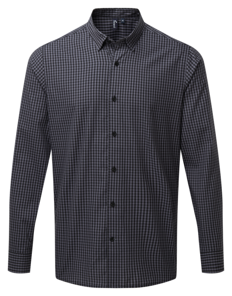 65% polyester / 35% kleurgeweven popelinekatoen. Overhemd met lange mouwen met knopen aan de mouwen. Knoop aan de kraag. Thuis wassen op 40 °C.