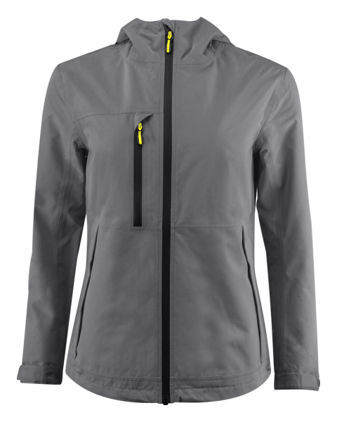 Functionele shelljas met getapete naden. Waterdichte ritssluiting vooraan en aan de borstzak. Omgedraaide nylon ritssluitingen aan de zijzakken. Aanpasbare velcrosluiting aan de manchetten. Mesh binnenvoering met borduurritssluiting. De capuchon en de zoom zijn aanpasbaar met elastische trekkoorden. De zippullers kunnen indien gewenst vervangen worden door één van de andere beschikbare kleuren.
