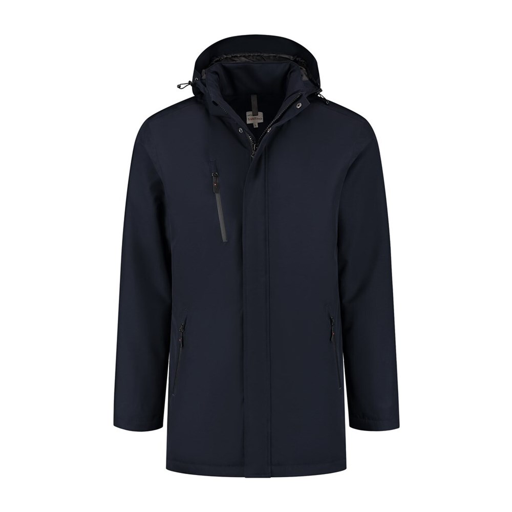 Parka, 100% polyester, 180 gr/m2, gevoerde parka met afneembare en verstelbare capuchon, gewatteerd, stof is gecoated en daardoor winddicht, waterdicht 5000 mm waterkolom en ademend 5000 gr/m2/24h. Opstaande kraag met voorsluiting 2-way YKK rits, borstzak en voorzakken met waterafstotende YKK ritsen. Mouw met windstopper, 1 binnen borstzak, 2 binnen heupzakken en een printrits aan de binnenzijde. Alle naden aan de binnenkant zijn waterdicht getaped.