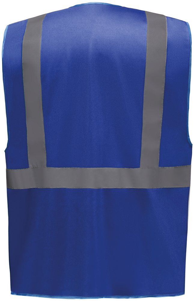 100% polyester. 5 cm brede reflectiebanden rond het lichaam en één over elke schouder. Mobiele telefoon/walkie-talkie zak op de borst links vooraan. Ritssluiting vooraan over de hele lengte. Twee zakken onderaan met flappen en toegankelijk van de boven- en zijkant. Penzakken en sleutelhouder. ID-zak op de rechterborst. Groot oppervlak op achterkant voor decoratie. Voldoet aan de volgende normering: -EN ISO20471:2013 Klasse 2: enkel Hi Vis Yellow, Hi Vis Orange en Hi Vis Yellow/Hi Vis Orange. -EN ISO20471:2013 Klasse 1: enkel Paramedic Green/Hi Vis Yellow, Royal Blue/Hi Vis Yellow, Red/Hi Vis Yellow, Hi Vis Yellow/Black, Hi Vis Orange/Black, Hi Vis Yellow/Navy, Hi Vis Orange/Navy, Hi Vis Yellow/Grey, Hi Vis Orange/Grey en Hi Vis Yellow/Purple.