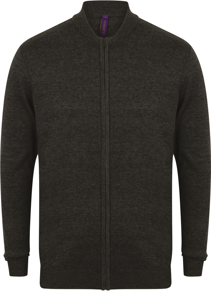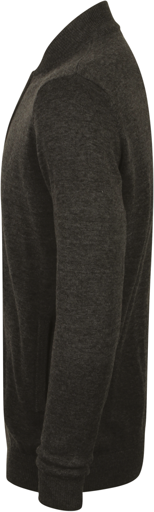 50% katoen / 50% acryl. Unisex cardigan met bomberkraag in fijn tricot van gauge 12. Semi-façonnémouwen. Ritssluiting aan de voorkant, met metalen rits en schuiver. 1x1 ribboord aan kraag, mouwuiteinden en onderkant. Omzoomde zakken vooraan.