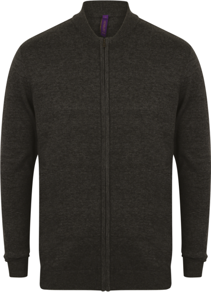 50% katoen / 50% acryl. Unisex cardigan met bomberkraag in fijn tricot van gauge 12....meer